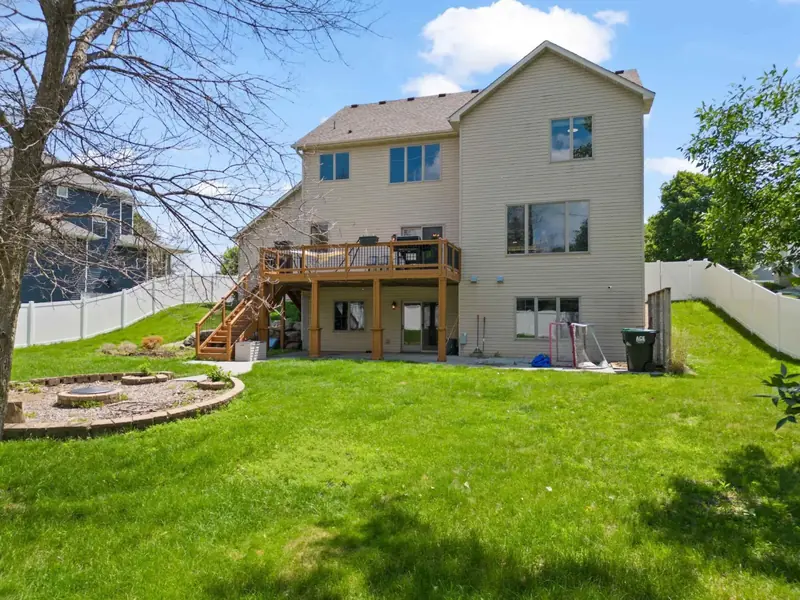 This lovely 2-story home on a walk-out lot has so much space. The open main floor has a gourmet kitchen with stainless steel appliances, a cooktop, double wall ovens, a corner window with a sink overlooking the large in fenced in backyard. The kitchen and dining room are open to the family room with a gas fireplace. The main floor office is light filled with glass french doors for privacy. As you enter from the garage, there is a half bath, a separate storage / mud room, and a desk/drop area. Upstairs has 4 bedrooms and a laundry room with sink. Enjoy the large primary suite with separate jetted tub, shower, double sinks, storage, and large walk in closet. The other 3 large bedrooms share a full bathroom, with the tub/shower combo and toilet in a separate room from the double sinks. A full, unfinished walkout basement is waiting for you to build equity as you make it your own! Located near Hwy 610 and 169, the Coon Rapids Dam, this home is close to shopping, parks, and so much more!