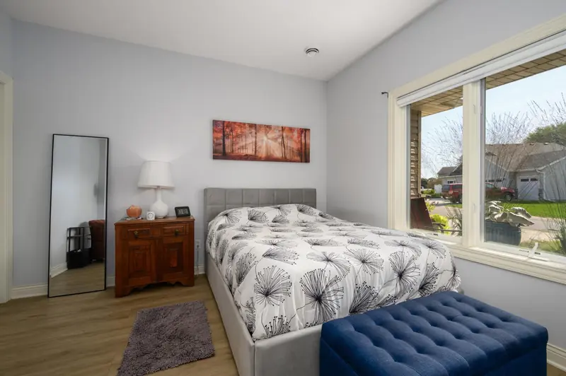 Relax in the primary bathroom with in-floor heating. Bedrooms include custom closet organizers, and custom blinds provide privacy and light control. A new roof installed in 2024 adds peace of mind.