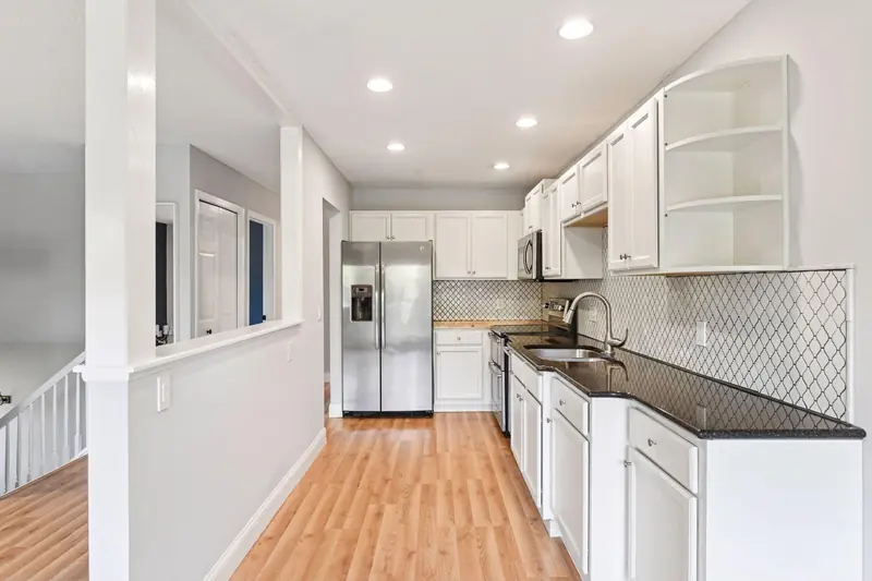 Thoughtful updates continue throughout the home, including solid-surface flooring, a brand-new furnace (October 2025), and washer and dryer. The oversized garage provides excellent storage for bikes, tools, and seasonal items. Located in one of the development’s premier settings, this home offers easy access to major roadways, yet sits within a quiet, well-maintained community.