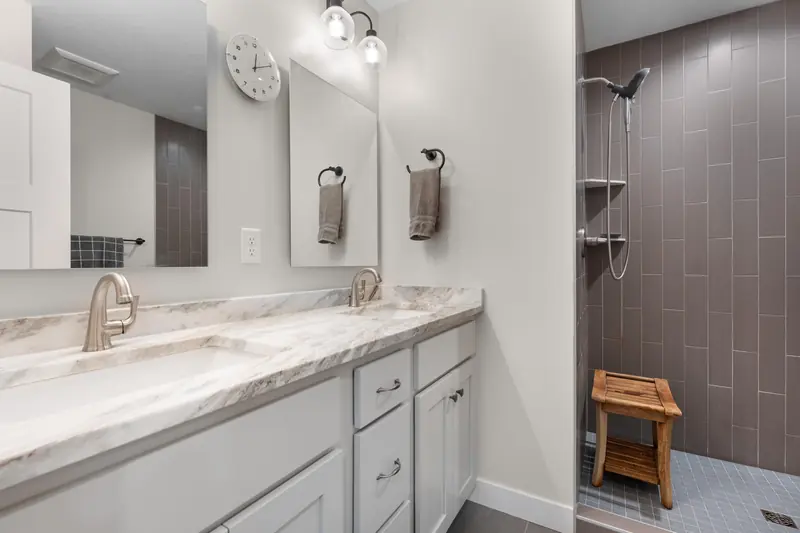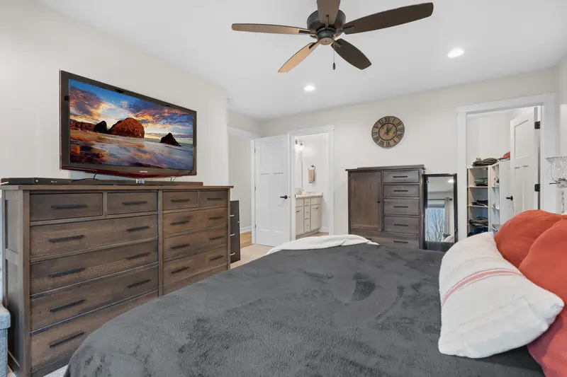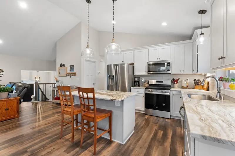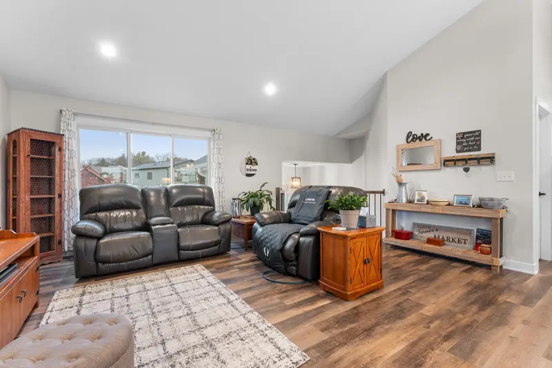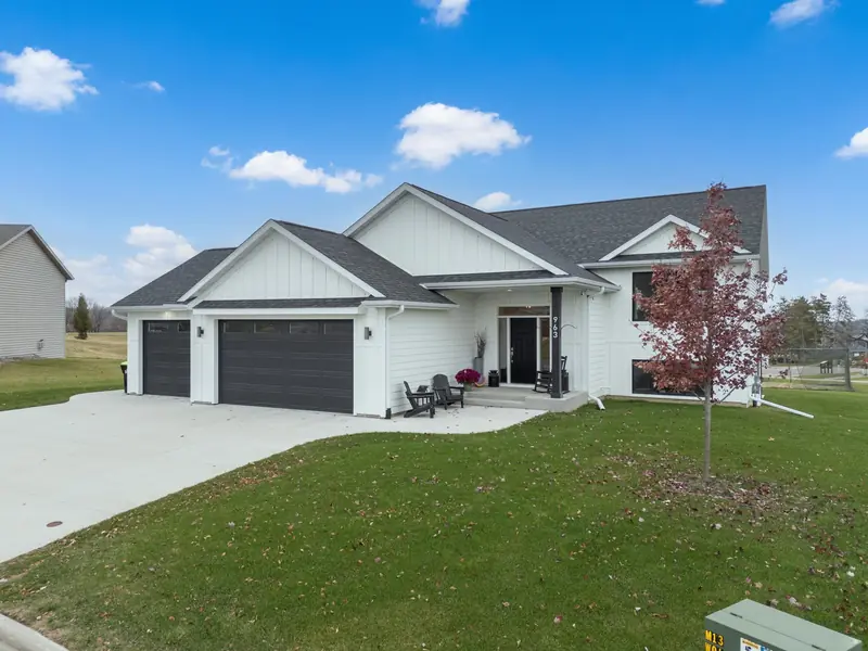 Experience the pinnacle of maintenance-free living in this stunning, nearly new construction home, perfectly situated with desirable golf course views. Designed for ultimate comfort and multigenerational housing, this residence offers a unique and highly sought-after floor plan. Inside, you will find TWO private Primary En Suites, providing unparalleled privacy and flexibility for in-laws, long-term guests, or a convenient main-level owner's retreat. The main level is thoughtfully completed by three total bedrooms, ensuring effortless single-level living. Unwind and rejuvenate in your own private SAUNA (Stays!) after a long day. For added accessibility, a convenient over-the-stair chair lift is currently installed, which can be easily removed if desired. Enjoy the outdoors from your maintenance-free deck overlooking the course, and keep your vehicles and projects protected in the oversized, heated garage—a dream for hobbyists and car enthusiasts. Bring your ideas and creativity to finish off the lower level family room! Once all complete you will have slightly under 3000 sq feet!