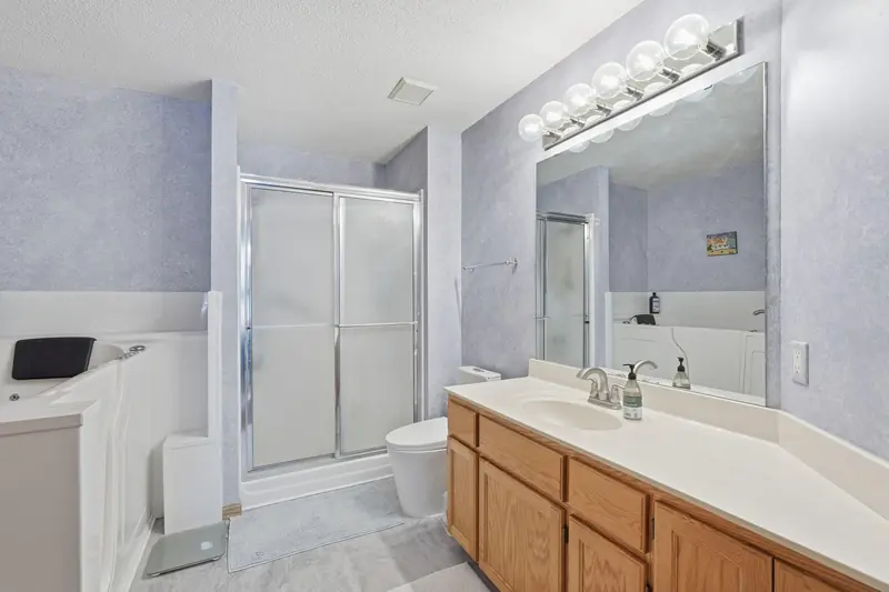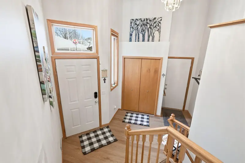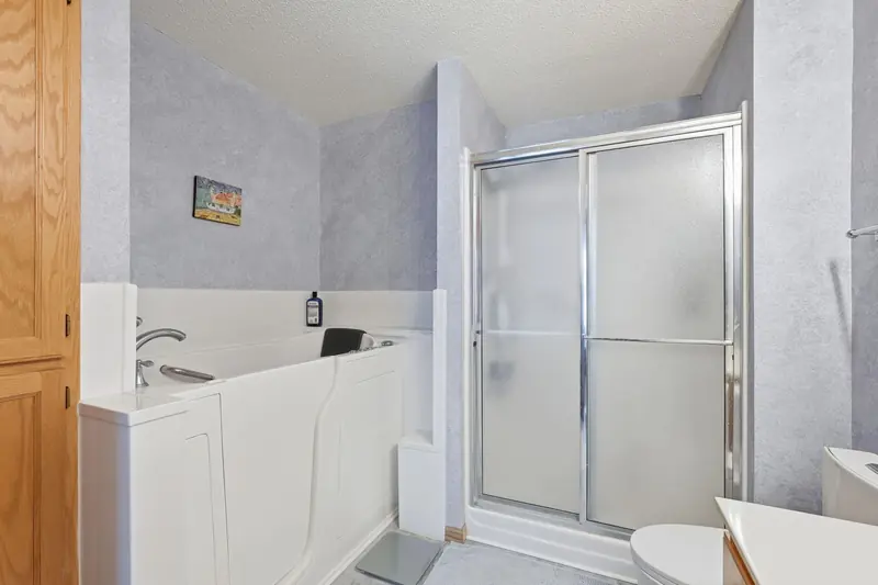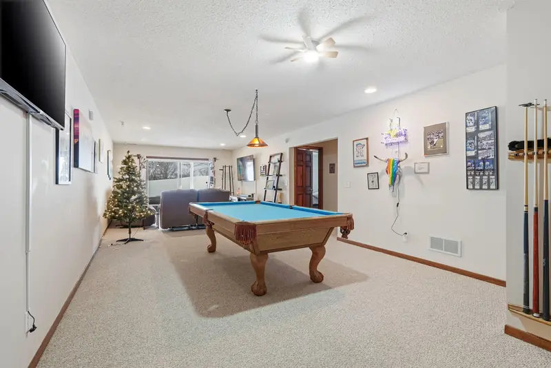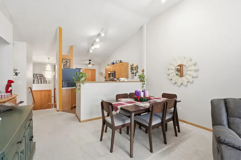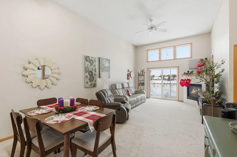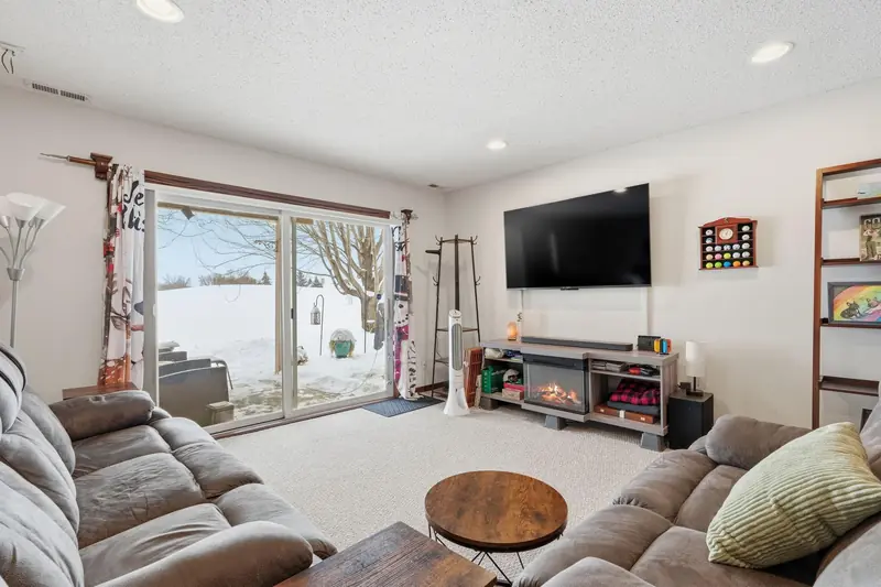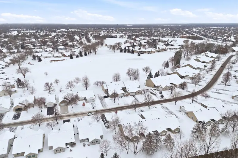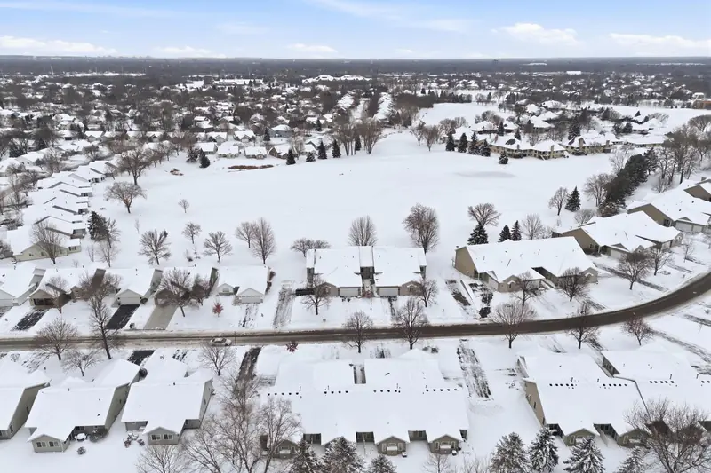 Rare chance to own a townhome overlooking Edinburgh Golf Course with beautiful views from the main living area and primary bedroom. The main level feels bright and open with vaulted ceilings, a gas fireplace, LVP flooring in the entry and kitchen, and all new mechanicals. The primary suite includes a walk-in closet, and a second bedroom and bathroom complete the main floor. The walkout lower level offers a spacious family room, an additional bedroom, and a 3/4 bath. Minutes from Hy-Vee, restaurants, shopping, parks, trails, and easy access to 610. Move-in ready in an unbeatable setting.