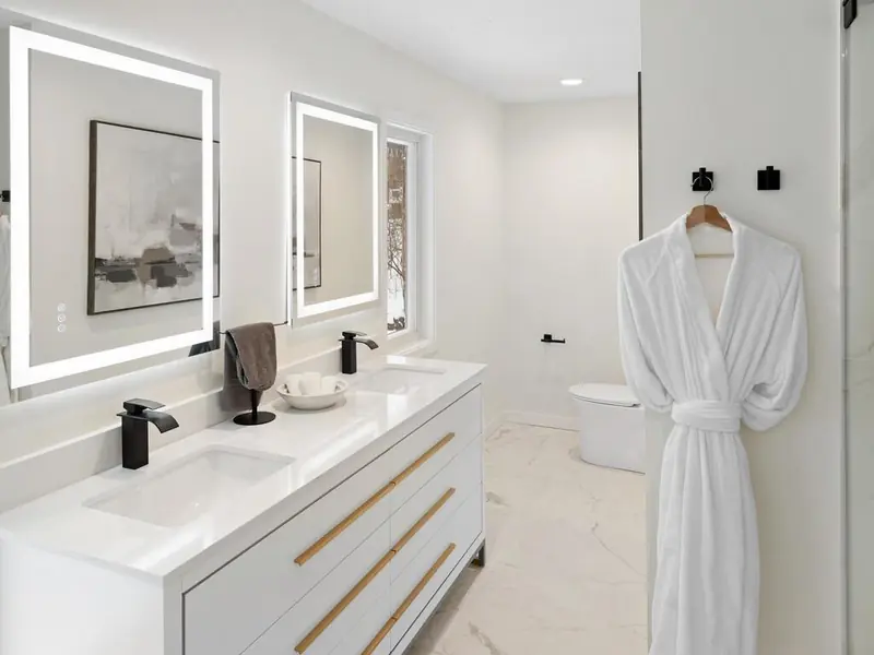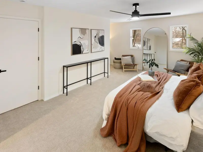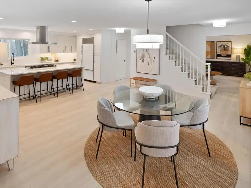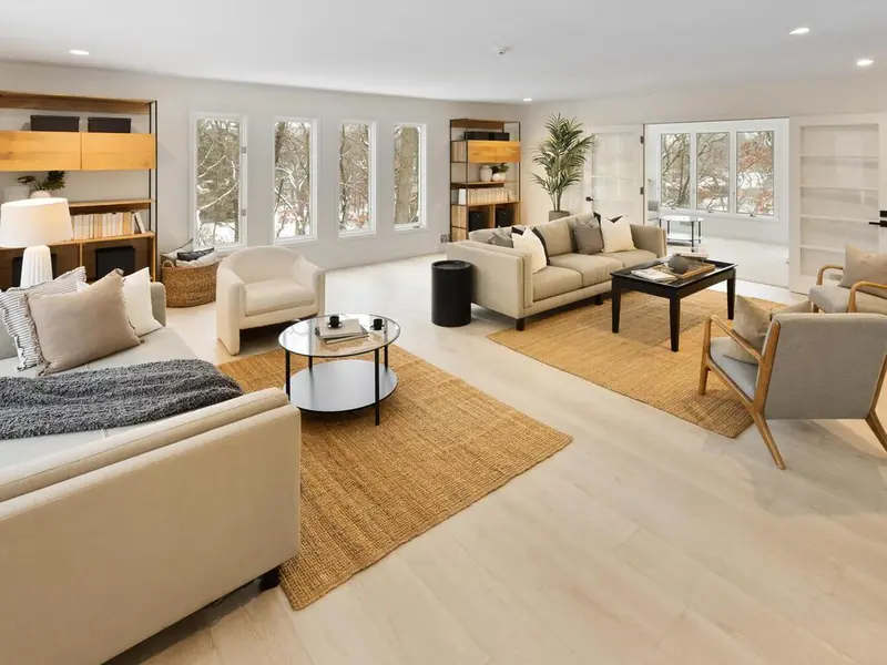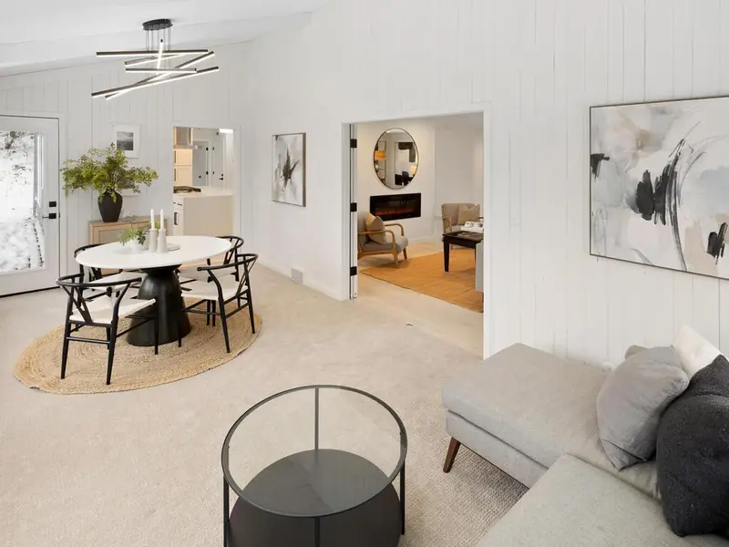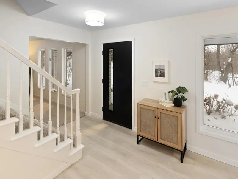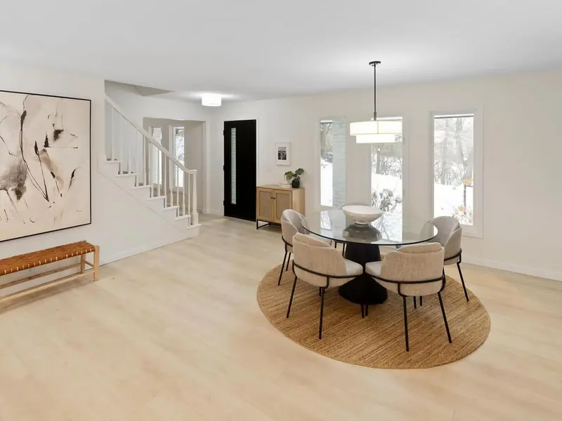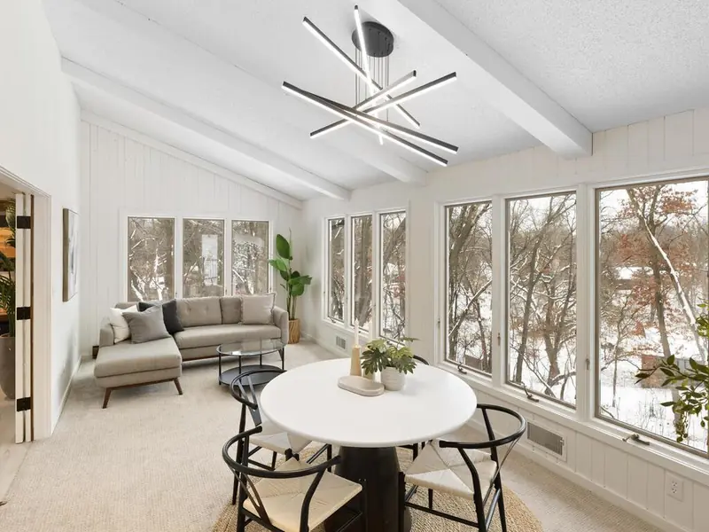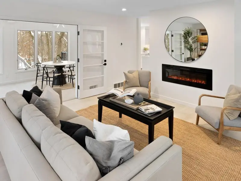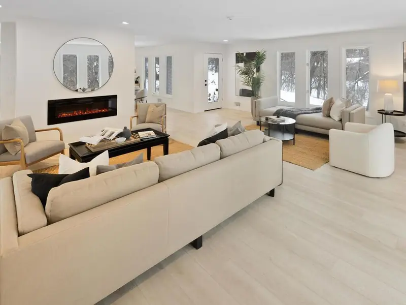 This fully renovated home is nestled on a private wooded lot in the coveted North Oaks community. Reimagined with exceptional craftsmanship, this residence offers a refined, modern interior rebuilt from the studs up. The main level has been opened to create a bright, seamless living space ideal for both everyday comfort and sophisticated entertaining with family & friends. At its center, the designer Kitchen showcases custom cabinetry, quartz countertops, under-cabinet lighting, high-end appliances, and a dramatic island that invites gathering. A sun-filled Four-Season Room and elegant main-floor Office provide versatile lifestyle options, while a new stylish half bath offers convenience. Upstairs, the expanded Owner’s Suite serves as a private retreat with a freestanding soaking tub, tiled walk-in shower, dual sinks and a generous walk-in closet. Thoughtful upgrades includes an upper level laundry room, LVP floors, plush carpet, designer lighting, electric fireplace, washer/dryer, new septic system, electrical panel, EV charging in garage, maintenance free composite deck, 11 new Andersen windows, fresh interior and exterior paint, and smart-home features. Roof replaced in 2019 by previous owner. The walkout lower level offers a flexible Family Room—perfect for media, game time, or entertaining—along with a stylish 3/4 Bath and direct access to the serene backyard. Located in the award-winning Mounds View School District, this move-in-ready home blends luxury, comfort, and tranquility. An exceptional opportunity awaits!